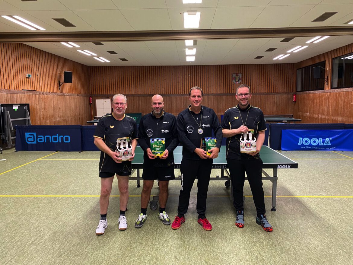 Endspiele dann in den Spielgruppen im Doppel, hier setzten sich zum einen Mentenich/Simon gegen Ehlen/Rossi durch und in der zweiten Spielgruppe Müller/Sommer gegen Esch/Scheiermann.